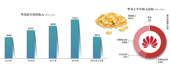 华为董事长梁华表示,今年上半年华为实现销售收入4013亿元,同比增长23.2%;净利润率为8.7%。从2018年财报来看,今年上半年华为的营收增速比去年还高,净利润增速也与去年的8.2%基本持平。