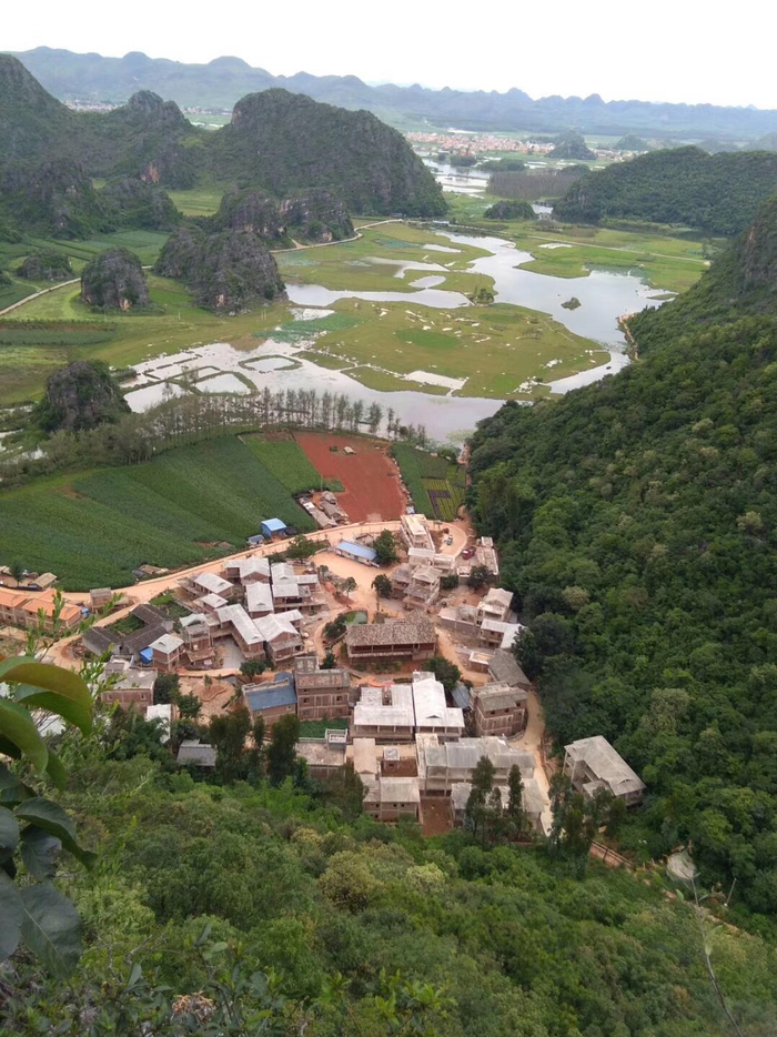 和普者黑景区的特点相同,菜花箐也由山与湿地构成。虽然村子在景区内,但从行政归属上,以一桥相连的两村隶属不同的乡镇。菜花箐属于曰者镇,而普者黑村属于双龙营镇。