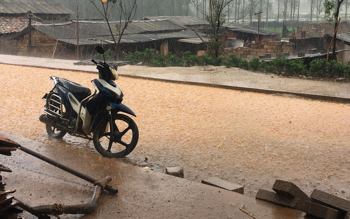 一下雨,村里的路面就变成“土黄色”。新京报记者 张羽 摄