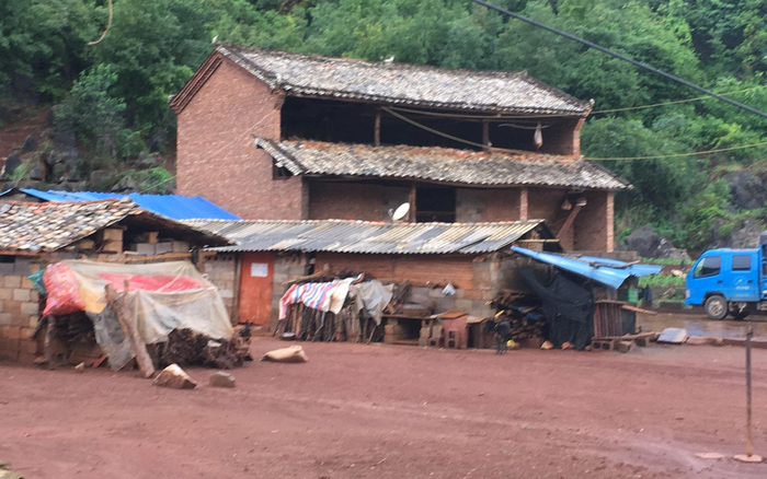 老村子已成回忆,如今菜花箐村却更像一个没完工的建筑工地。若不是看到二楼正在晾晒的衣物,很难想象这里竟能有人居住。