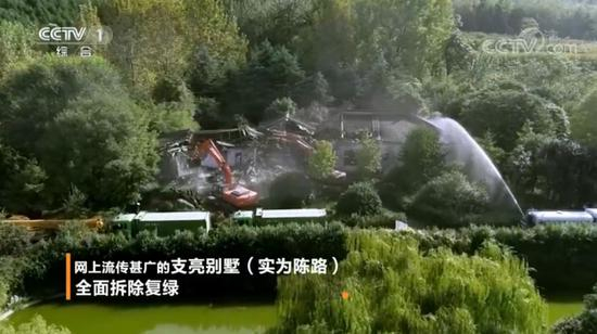 央视专题片《一抓到底正风纪》披露也提到了该别墅: 网上流传甚广的支亮别墅(实为陈路)全面拆除复绿。