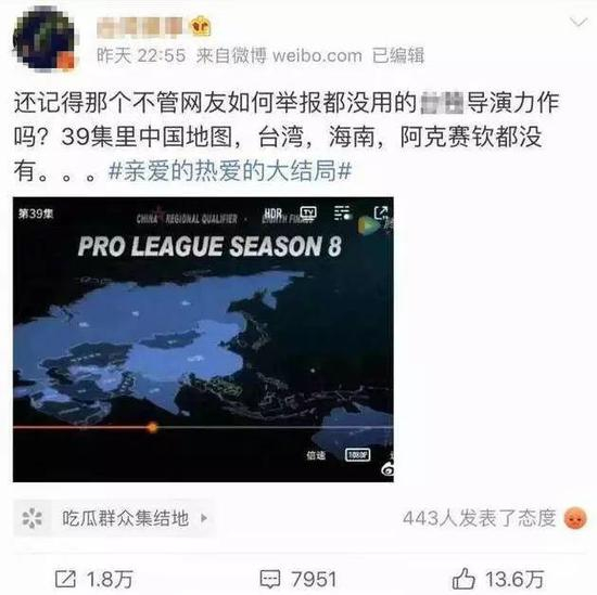 在第39集中出现的地图上,绝大部分中国版图都为浅蓝色,原本属于中国的海南岛和台湾岛却是深蓝,同时,地图在中印边境东西两段的版图也出现了错误。有网友指出,这部剧原名是《蜜汁炖鱿鱼》,改编自同名小说,原本由台湾导演瞿友宁执导,他很早以前就被指出疑似“台独”。《环球时报》记者1日采访瞿友宁,他表示自己并没有看到过这张地图,“不会做这种不大气的事情”,他还重申自己支持一个中国的立场,“希望两岸更有爱地交流”。