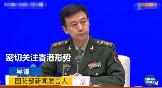 现场有香港记者就近日来香港形势提问,吴谦回应称:“关于你的具体问题,在驻军法的第三章第十四条有明确规定。”
