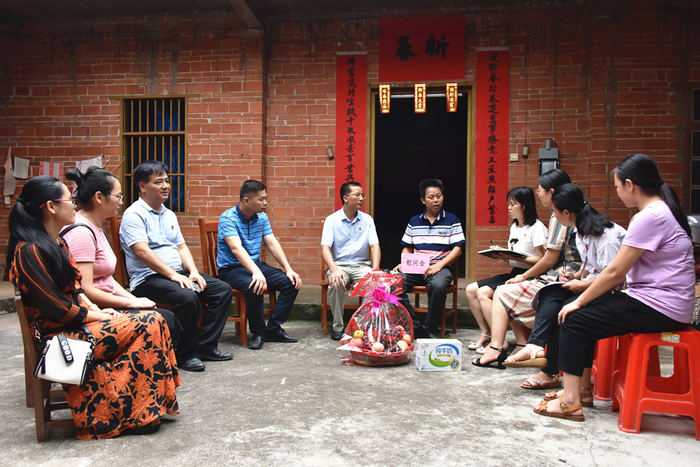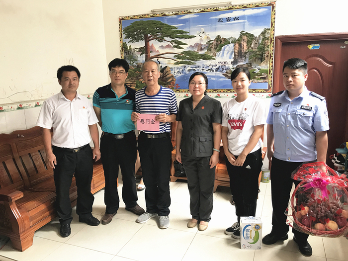 在大洲镇益太村吴宇森家中,平南法院第二党支部祝他节日快乐,送去节日问候,同时送去慰问品和慰问金。
