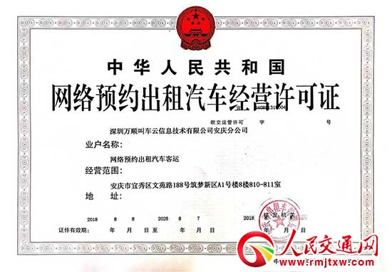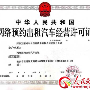 人民交通讯(记者|石忠平)2017年11月2日,深圳万顺叫车云信息技术有限公司在安庆市再次收获硕果,安庆市交通运输管理部门为万顺叫车分公司颁发了《网络预约出租汽车经营许可证》,公司中进华东的战略,再布一棋。