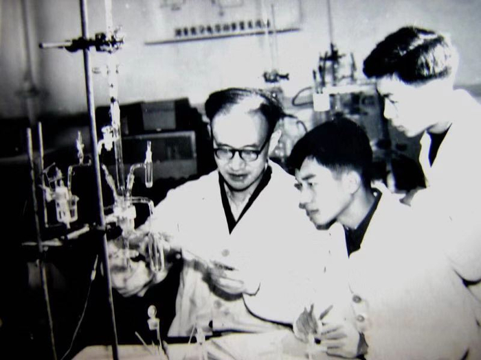 二十世纪六十年代,查全性和学生讨论实验。受访者供图