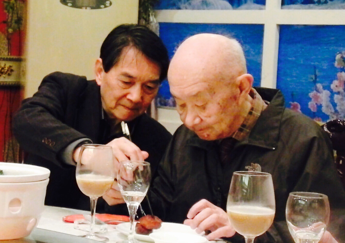 聚餐时,周运鸿给查全性夹菜。受访者供图