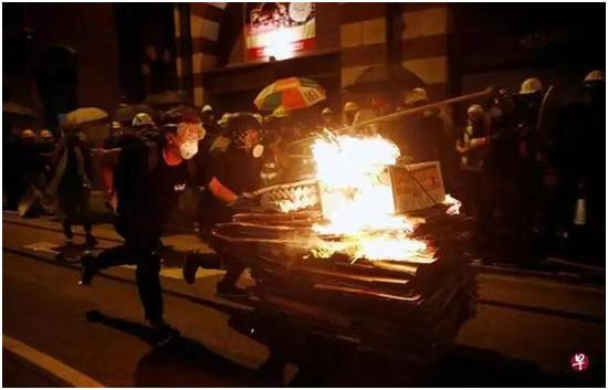 一些暴徒霸占了铜锣湾的道路,破坏公共物业,造成了严重的交通障碍。
