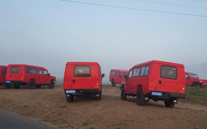 外观统一的越野车,疑为旅游公司投放。新京报记者 王颖 摄