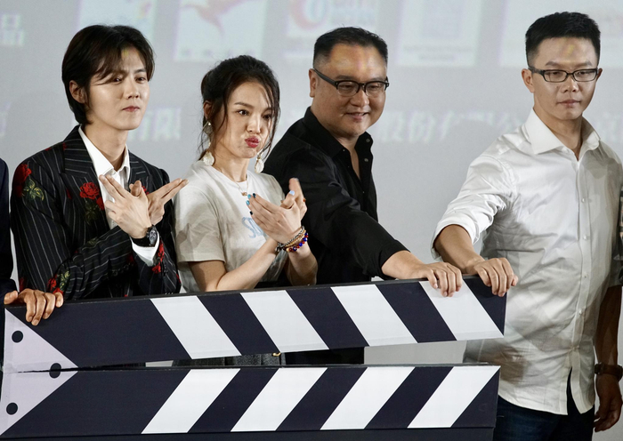 鹿晗、舒淇、导演滕华涛、原著作者江南出席发布会。新京报记者 郭延冰/摄
