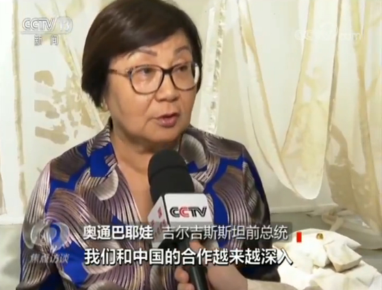 吉尔吉斯斯坦前总统奥通巴耶娃说:“我们和中国的合作越来越深入,也越来越广泛,我们认为与中国的经济、政治、文化等领域的合作具有极其重要的作用。”