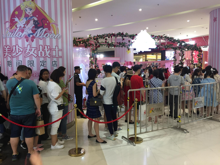 美少女战士展在朝阳大悦城举办期间,人流高峰期的周边产品售卖区采取了限流手段。新京报记者 王琳 摄