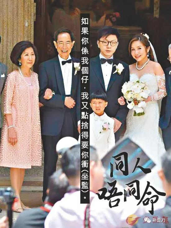 一边是歌舞升平的豪门婚宴,一边是杀红了眼的街头政治,李柱铭身段婀娜,也逃不过网民法眼。有人把因参与“占中”被判入狱的暴乱分子梁天琦的头像P到了李柱铭的结婚照上,还配文:如果你是我儿子,我怎么舍得让你上街(当炮灰)?