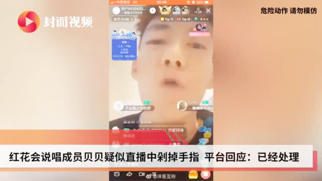 视频-红花会贝贝直播中疑似剁手指 其直播账户被永久禁播