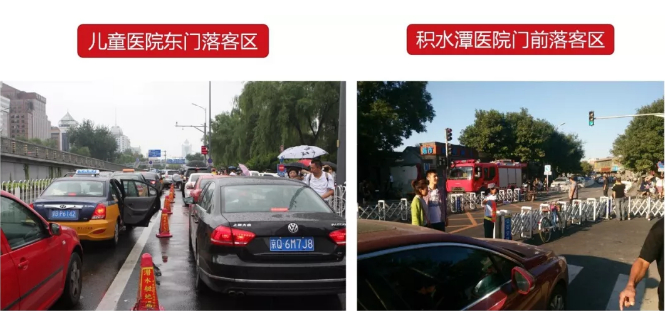 积水潭医院、儿童医院、阜外医院等医院的治堵方式,是在门前及附近区域设置临时落客区、临时停靠点,方便患者上下车。