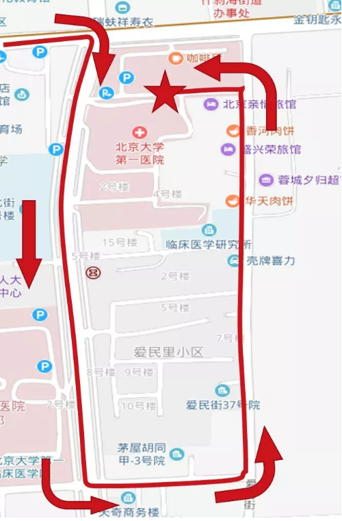 比如北京大学第一医院,旁边是爱民里小区,拥堵问题就较为突出。