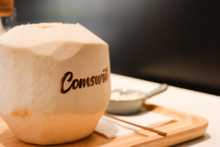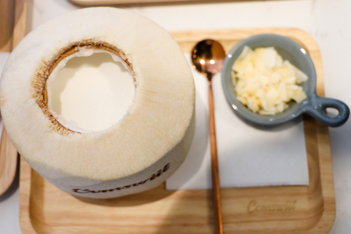 除了“篮球”,Comswiit里还有另外一个特色元素,那就是“椰子”。店内的甜品和饮品基本上都与“椰子”有关,要么直接用新鲜的椰子作为原料进行制作,要么用椰子片作为配料进行点缀,而且选用的都是从泰国进口的新鲜椰子!