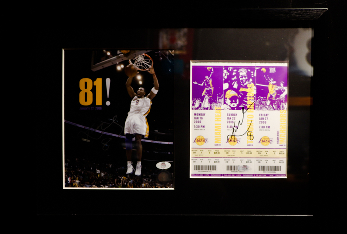 除了这双有不同球星签名的AJ外,对面墙上的票根也激发了京蜜的好奇心。问过之后,京蜜才知道,这个看似普通的票根,其实背后有着深刻的纪念意义,那其实是2006年科比单场得分最高那场比赛的票根。