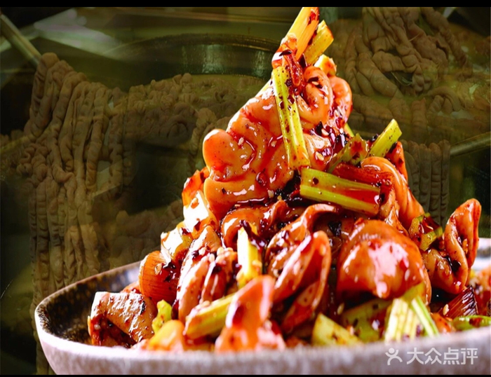 既然敢在菜名里打出“招牌”二字,那必然对这道菜有着绝对的信心。“热拌”的方法区别于常见的红烧、干煸,据说这是一种重庆当地人家常拌凉菜的方法:肥肠煮熟,趁热加调料拌食。