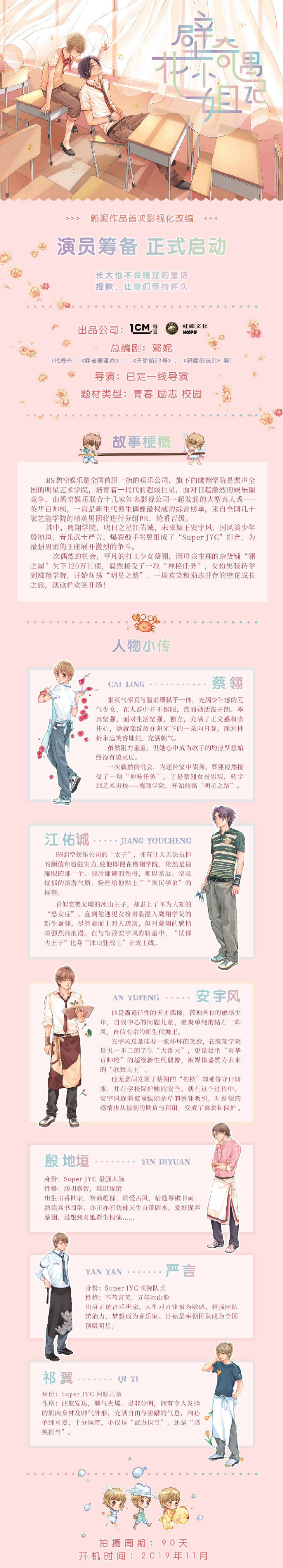 1CM领誉的官方微博也确认了这一消息,并发文称:“经典言情IP 《壁花小姐奇遇记》影视项目正式启动。郭妮作品首次影视化。”