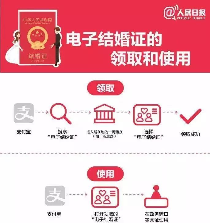 8月6日,支付宝宣布上线电子结婚证,支持福建、江西、江苏、浙江、重庆5省市领取。