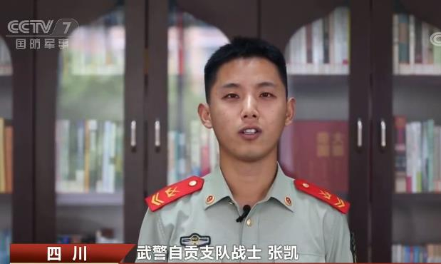 武警自贡支队战士 张凯:她有次来(部队)看我,坐了汽车转飞机、又转汽车再转动车。和我说的一句话就是:张凯啊,见你一次可真不容易,我在车上都吐了两回了。