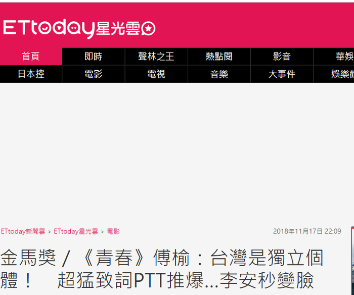 《中时电子报》:“陆电影局:暂停影片和人员,参加2019台北金马奖”
