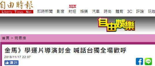 《自由时报》:“卡台下重手,中国禁报名2019年金马影展”