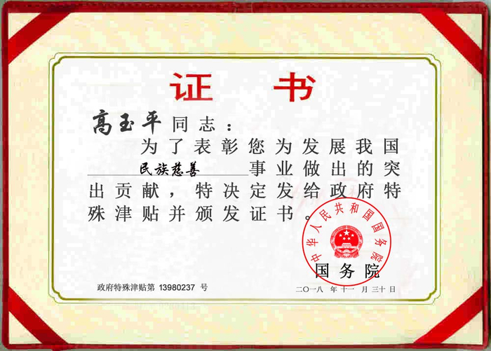 高某平缴纳了400万风险保证金后,团队里开始有人询问情况,问钱什么时候可以到位。“工作组组长”告诉高某平,经过开会讨论,决定先为他们基金会成员通过“政府特殊津贴”项目发放一部分资金。但是要交“政府特殊津贴”工本费,按照38元、58元、78元三档交钱,每月分别可以享受720元、1280元、1880元津贴。