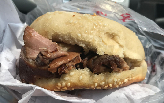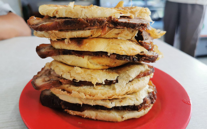 提及烧饼夹肉,必须得提一下位于通州区梨园的“西海子西园肉夹馍”,他家的肉夹馍有一个可爱的名字——“小猪盖被”。这家店在通州太有名了,除了周边老顾客,也不乏住在城区慕名而来的顾客。和前一家店一样,这家店也搬过家,但人气并未受影响。