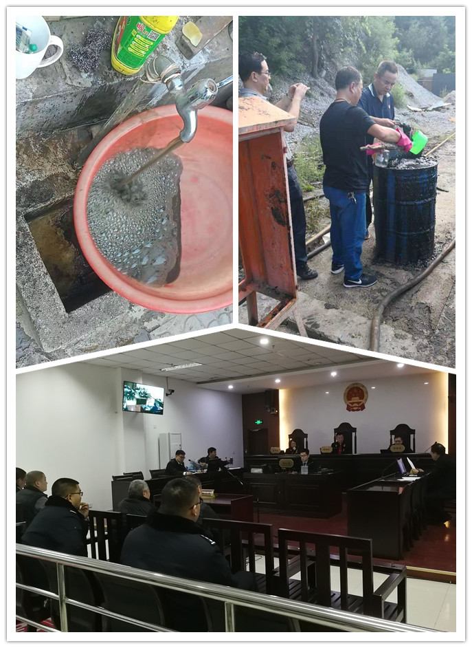 上左:自来水管流出黑水;上右:检察官现场调查;下图:庭审现场