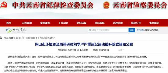 今年4月10日,经过保山市纪委监委5个多月的留置审查,刘学严因涉嫌严重违法,被正式移送检察机关审查起诉;4月12日,经保山市纪委常委会会议、市监察委委员会会议研究,并报保山市委常委会会议批准,决定给予刘学严开除党籍、开除公职处分,违纪所得予以收缴,涉嫌犯罪问题及所涉财物移送司法机关依法处理。