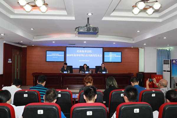 2019年8月8日下午,北海海事法院召开新闻发布会,首次以中英文形式,向社会公开发布2018年度海事审判白皮书。发布会上,该院党组成员、副院长马晓岚通报海事审判白皮书的总体情况,并重点介绍北海海事法院2018年审判情况和审判执行工作中发现的问题及建议,审判管理办公室主任陆英涛介绍该院2018年度十大案件。发布会由该院研究室主任赵波主持。部分海事行政部门、金融保险机构、律师事务所及新闻媒体等单位应邀参加了本次新闻发布会。