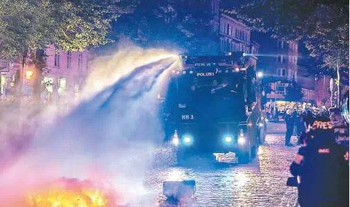政知圈查阅披露的招标文件,香港曾引进购买的水炮车安装2大4小共6支水炮,设有3个水缸供水。两支主炮每分钟射水最少1200升、水压最小有1000kPa(千帕),射程50米,水炮可左右转动180度,以达至360度全方位覆盖率,而且该炮还可上下移动。值得一提的是,水炮车除可喷水及喷泡外,亦可混入催泪烟水剂及颜料喷出。
