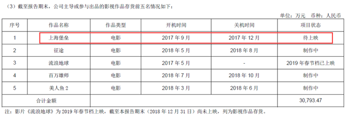2017年6月,华视娱乐曾向证监会提交上市申请书,欲登陆A股。招股书显示,华视娱乐拥有《上海堡垒》30%的投资份额,拟投资金额为1.08亿元,以此计算整部影片的投资金额约为3.6亿元。