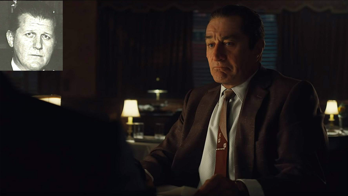 原型人物弗兰克·谢兰是一名工会官员,但他还有另一个重要身份——职业杀手,他至少负责实施过25桩暗杀行动。他与黑手党头目拉塞尔·布法利诺关系密切。弗兰克·谢兰身高1.93米,而扮演他的罗伯特·德尼罗身高才1.77米,为了还原真实,罗伯特·德尼罗在拍戏时不得不穿着增高鞋。