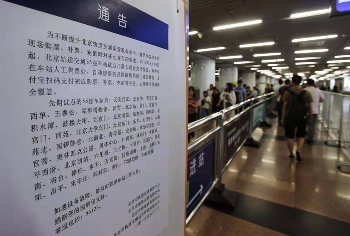 今日起,王府井、北京西站等55座地铁站率先试点非现金支付服务。