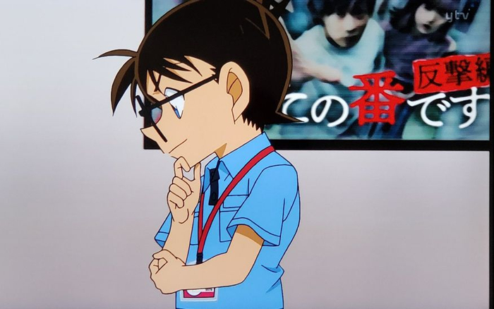 8月10日下午5点,在《名侦探柯南》第1007集《广播电台的烦恼咨询(解谜篇)》中,柯南走过的画面里出现了日剧《轮到你了》(反击篇)的海报。