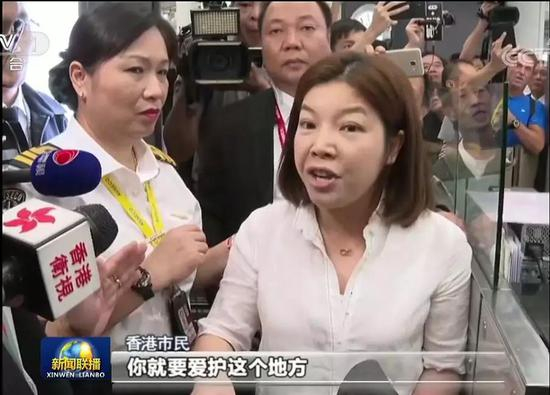 这位女士表示,自己早就看不惯他们拿着美国国旗耀武扬威,香港90%的人都是只要和平。她还向示威者喊话:“你是中国人,你是香港人,你就要爱护这个地方,你们不能把这里搞得这么乱。”