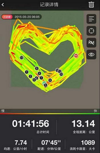 还有喜欢发夜跑路线的,就很好奇不怕暴露自己的隐私吗?不怕被盯上吗?甚至有些“土味情话”表白,喜欢去跑个路线“I ♥ U”,然后把这个路线拍个照片发给自己的女神。你怎么不跑个中文版的“我爱你”呢?那多复杂!