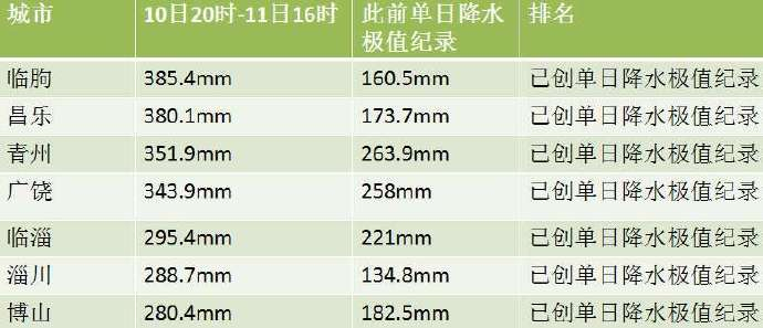 另外,山东寿光今日12点以后实况缺测,从昨天20时到今日12时累计雨量222mm,也已经创造了单日降水的极值纪录。