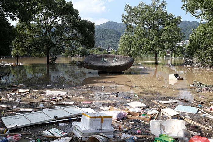台风“利奇马”离去 千年古城临海仍一片“泽国”