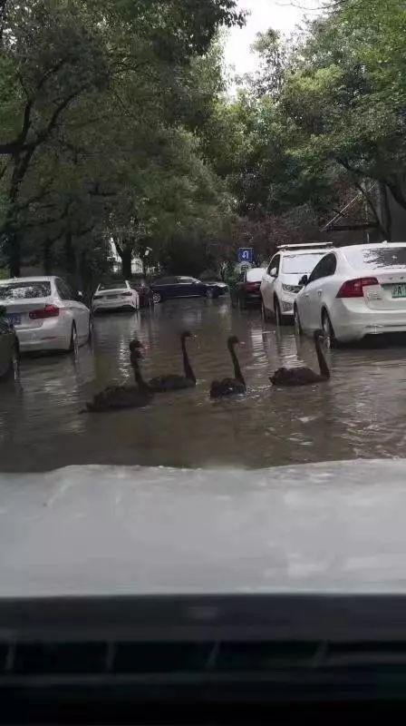 8月10日下午,网上流传出一组天鹅成群结队“荡”马路的视频和图片,引起诸多讨论。部分网友猜测是徐家汇公园或上海动物园的天鹅们趁着台风天湖面上涨集体出游。