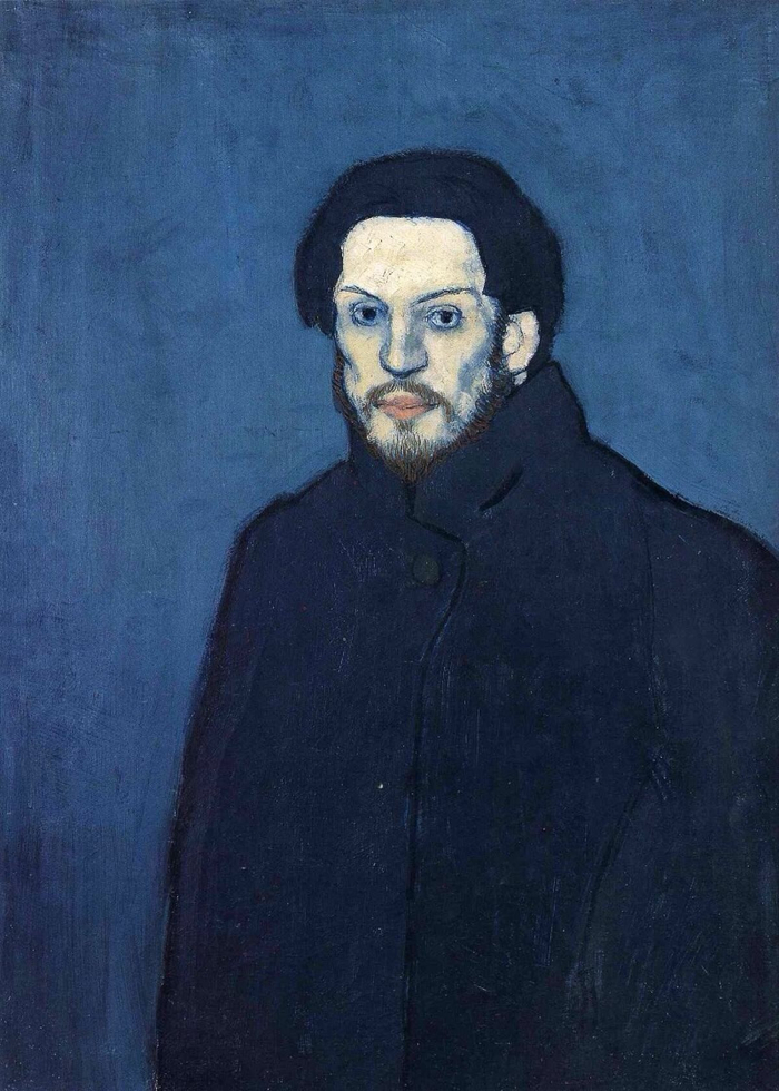 毕加索“蓝色时期”《自画像》,1901年末。