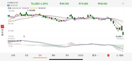 国泰航空的大股东是老牌英资财团太古股份有限公司,持有国泰航空45%股份。今天,太古股份公司A股价更是大跌6.3%,市值蒸发75亿港元。