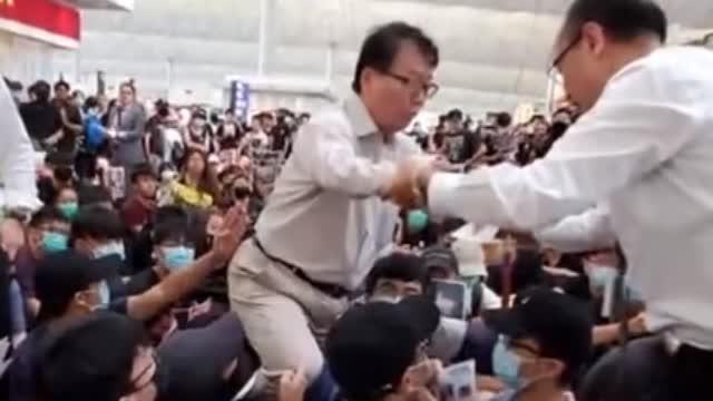 视频-香港机场现在的样子:示威者机场静坐阻碍通行 与旅客发生冲突