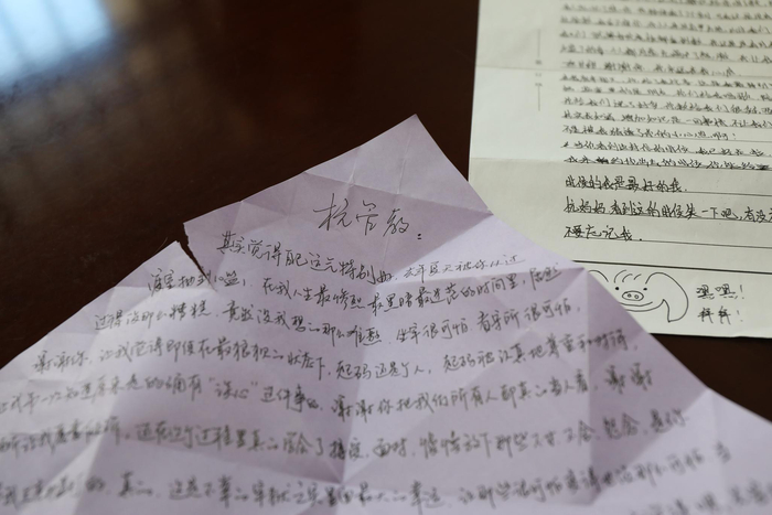 投送监狱前,在押人员留给管教民警杭国琴的信件,写着“不要忘记我”。 新京报记者 常卓瑾摄
