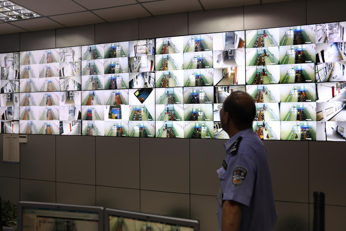 杨旭东在监控室查看在押人员情况。 新京报记者 常卓瑾摄