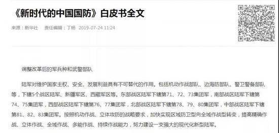 今年7月,国务院新闻办公室发表了《新时代的中国国防》白皮书,其中提到: