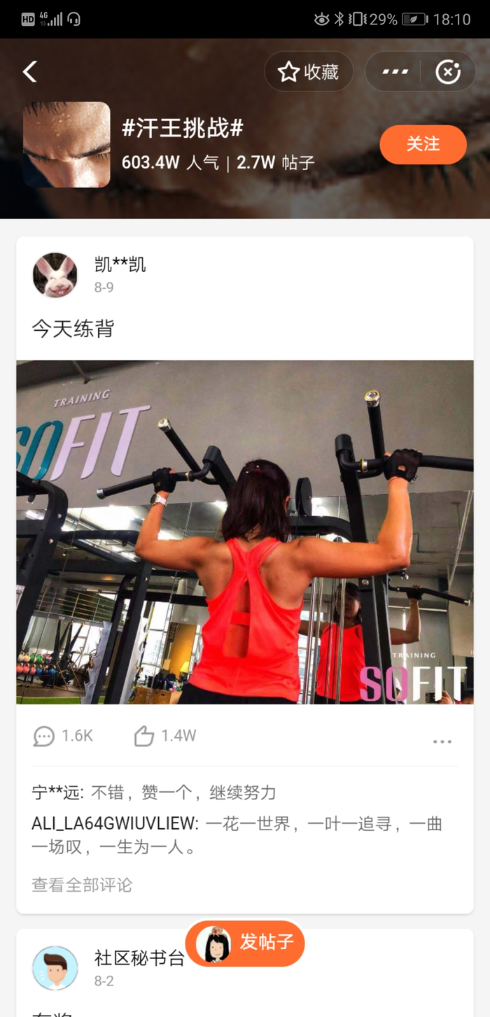 今年的8·8运动狂欢节新增运动社区板块,具备晒图、点赞、评论、分享功能。与专业服务健身人群、球迷人群不同,阿里体育运动社区的用户群更广,社交话题也就更加宽泛,使得流汗健身成为了一种理想的社交场景。